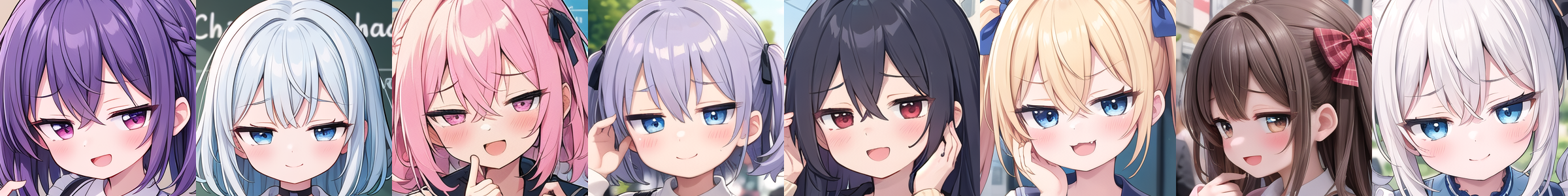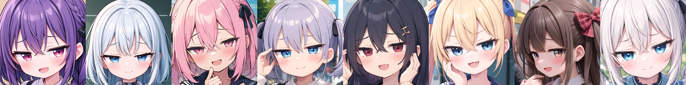 複数タイプを同時に適用したり、アイコレクションと同時に適用することで眼の形をさらにカスタマイズすることもできます。この場合、それぞれのLoRAの強度は応分(2つなら0.5ずつにするなど)してください。