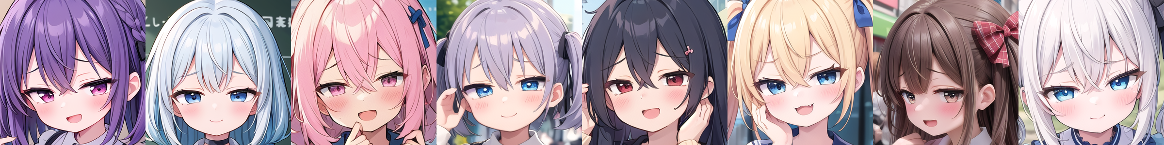 複数タイプを同時に適用したり、[アイコレクション](https://huggingface.co/JujoHotaru/lora/blob/main/eyecolle_preview/README.md)と同時に適用することで眼の形をさらにカスタマイズすることもできます。この場合、それぞれのLoRAの強度は応分(2つなら0.5ずつにするなど)してください。
